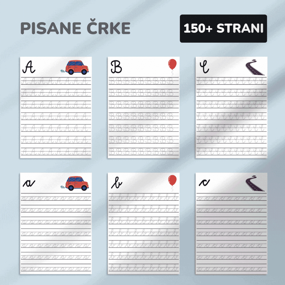 - Gradivo prilagojeno različnim učnim stilom (kartice, naloge, pisanje, barvanje)