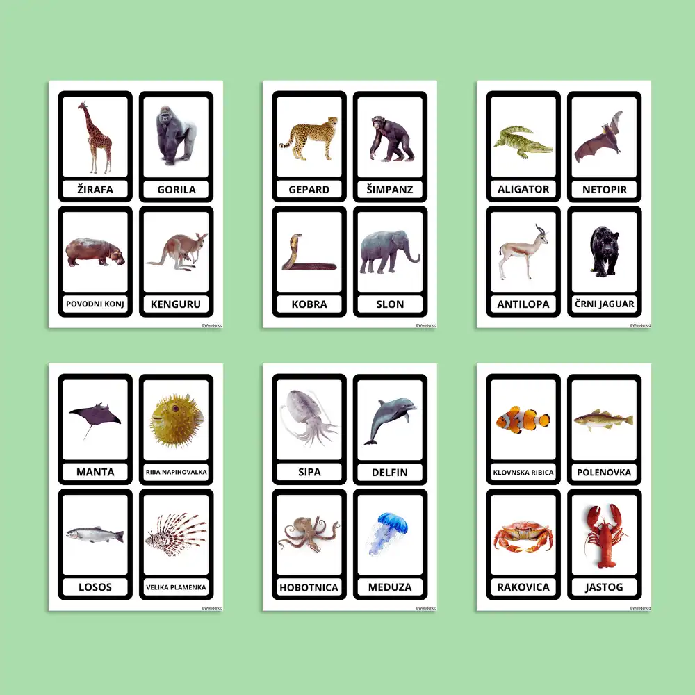 - 24 učnih kartic za džungelske živali